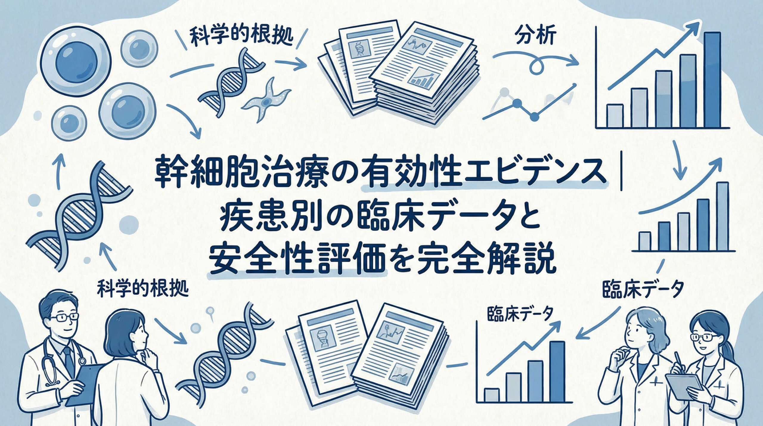 以下に、幹細胞治療の有効性エビデンスに関して、医師や患者様からよく寄せられる質問をまとめました。